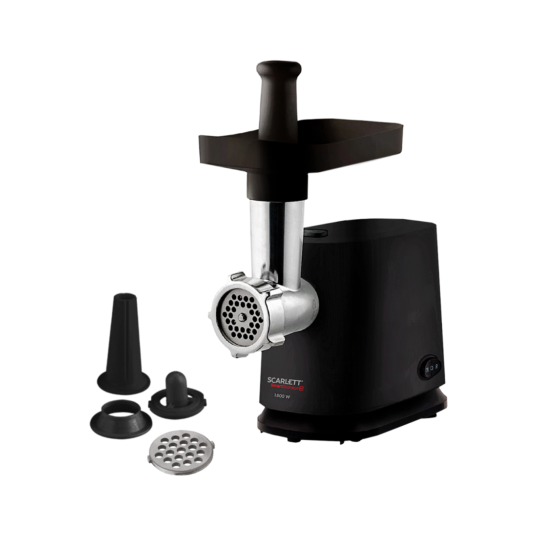 Электромясорубка Scarlett SC-MG45S71 станет вашим верным помощником в приготовлении мясных полуфабрикатов: благодаря мощному мотору она производит до 2 кг фарша в минуту. В комплект входят 2 решётки с отверстиями различного диаметра. А ещё вы сможете набить домашние колбаски и приготовить кеббе – трубочки из мясного фарша с разнообразными начинками. Соответствующие насадки прилагаются. Прокручивая жёсткое, жилистое мясо, волокна которого блокируют шнек, используйте реверс, и вам не понадобится разбирать и чистить горловину прибора. В корпусе есть специальный отсек для второго диска – он не потеряется и всегда будет под рукой. Также предусмотрено место для сматывания сетевого шнура, что очень удобно при хранении устройства. Ножки прорезинены и не позволят прибору соскользнуть со стола.