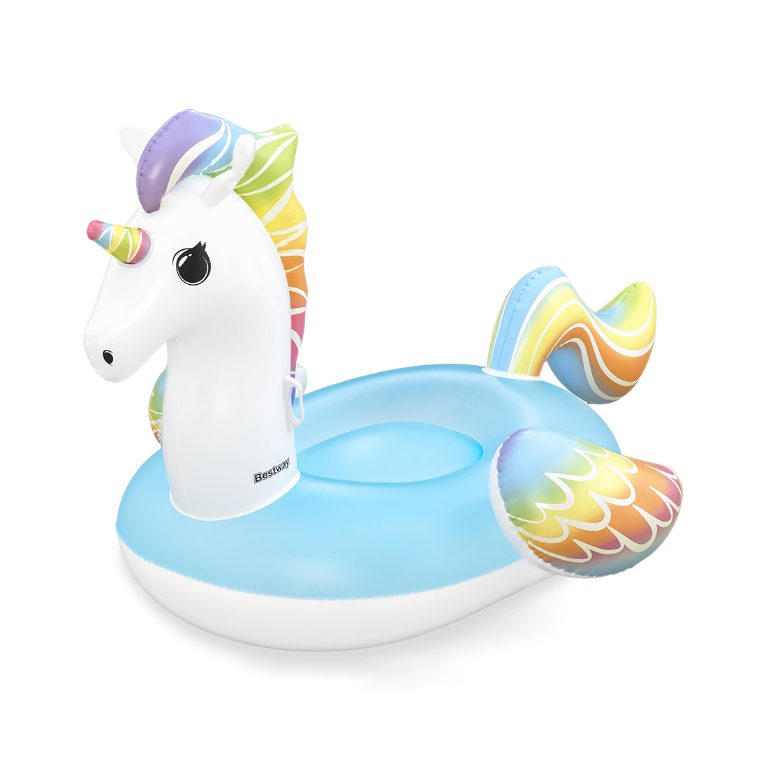Надувная игрушка для катания верхом Единорог (Supersized Unicorn) 224 х 164 см, BESTWAY, 41113, Винил, Голубой, С ручками, Цветная коробка