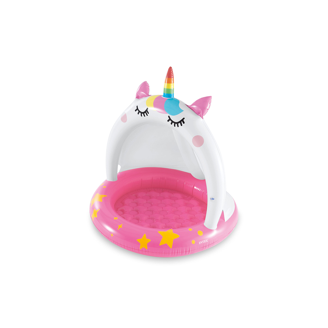 Детский надувной бассейн Caticorn Baby 102 х 102 см, INTEX, 58438NP, Винил, 45л., 1-3, Встроенный тент, Надувной пол, Бело-розовый, Цветная коробка