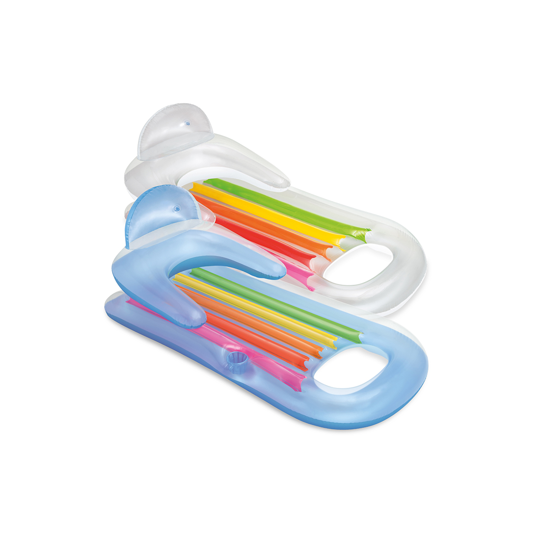 Надувной матрас INTEX 58802. Модель имеет удобный подголовник с подлокотниками для большего комфорта, отверстие в нижней части для ног, встроенный подстаканник для напитков. Состоит из трёх камер, и даже если одна из них повредиться, то кресло всё равно останется на плаву. Подойдёт как для бассейнов, так и для открытых водоёмов.
