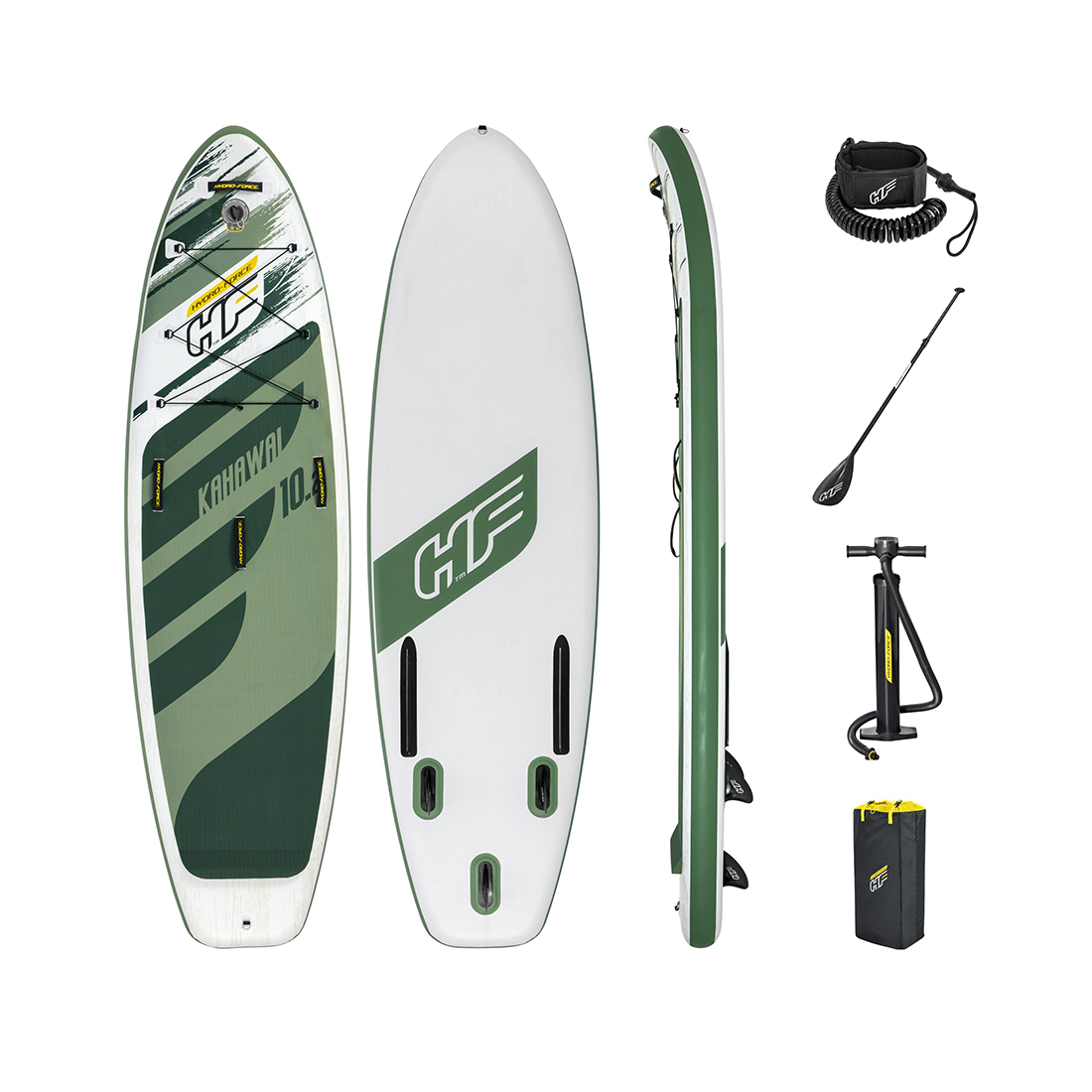 Доска для сёрфа надувная Kahawai Set 310 х 86 см, BESTWAY, 65308, Винил, Грузоподъемность 140 кг., Алюминиевое весло 217 см, Ручной насос, Рюкзак для переноски и хренения, Бело-зелёная, Цветная коробка