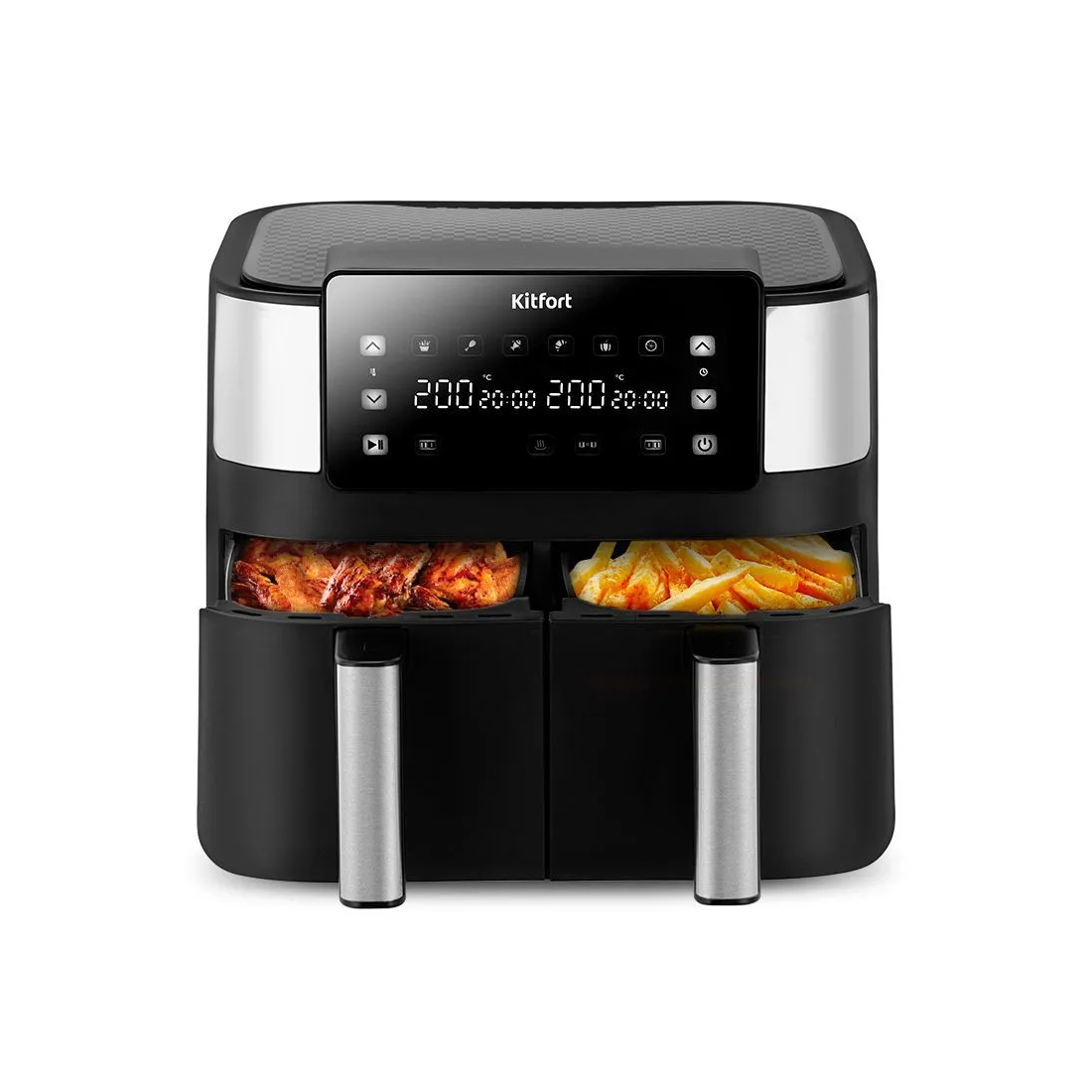 Аэрогриль КТ-2259 станет достойной заменной духовки, грилю, фритюрнице, микроволновке и дегидратору, что отлично поможет сэкономить вам место на кухне. А одновременная подача разных блюд сделает процесс готовки гораздо быстрее и эффективнее.