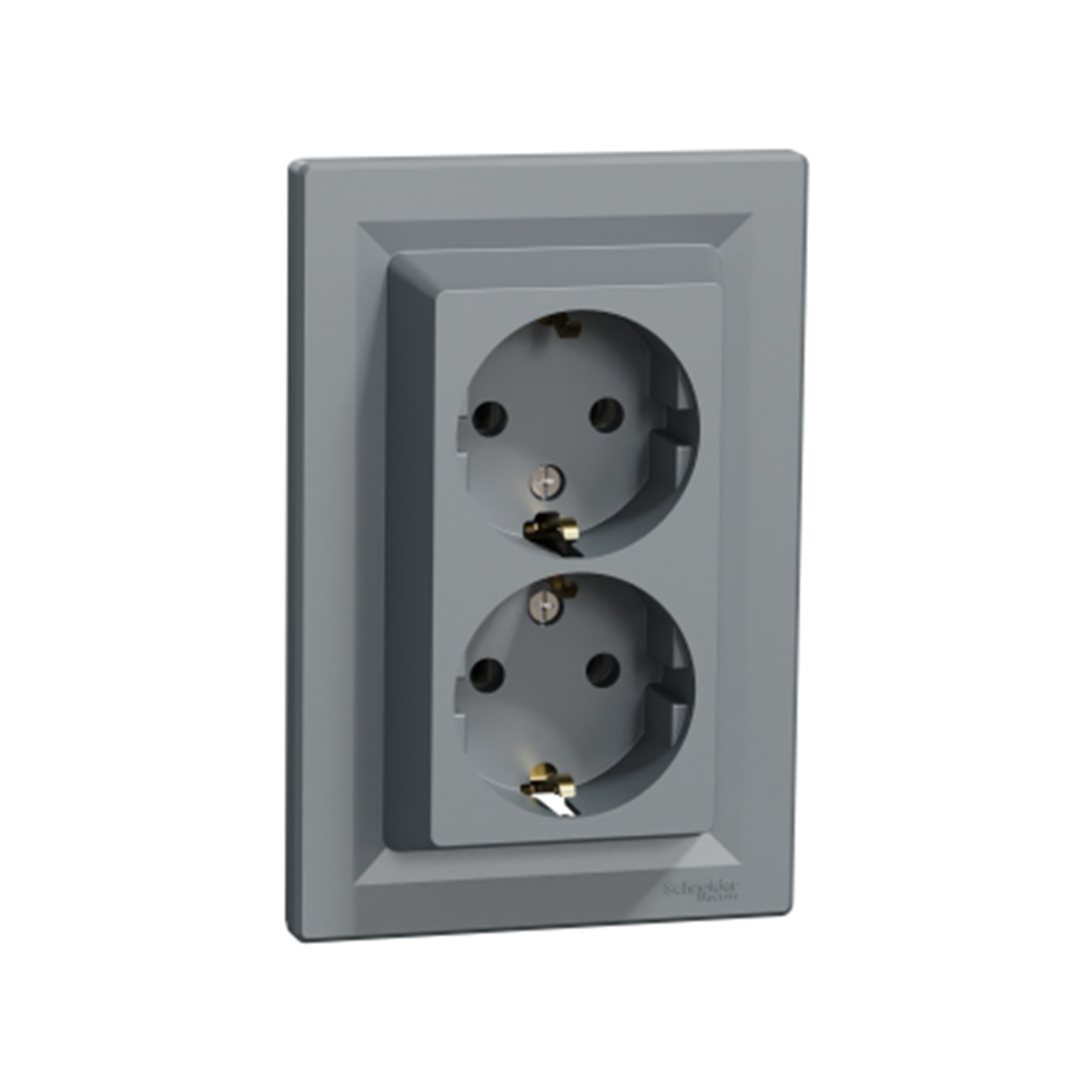 Розетка двойная SE EPH9900162 Asfora с заземлением в сборе винтовой СТАЛЬ