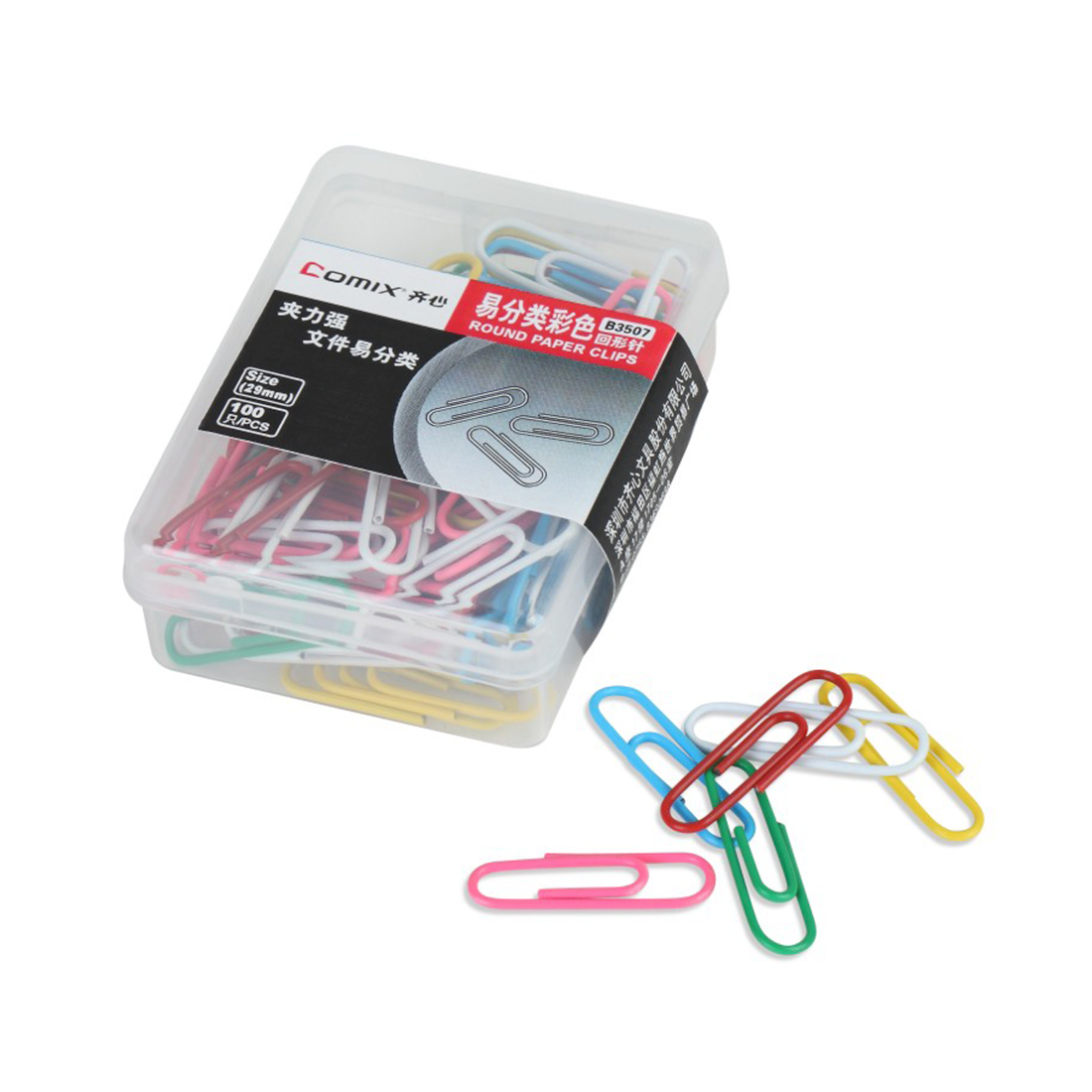 Скрепки металлические Comix B3507, 29 мм., цветные в ассортименте (коробка 100 скрепок)